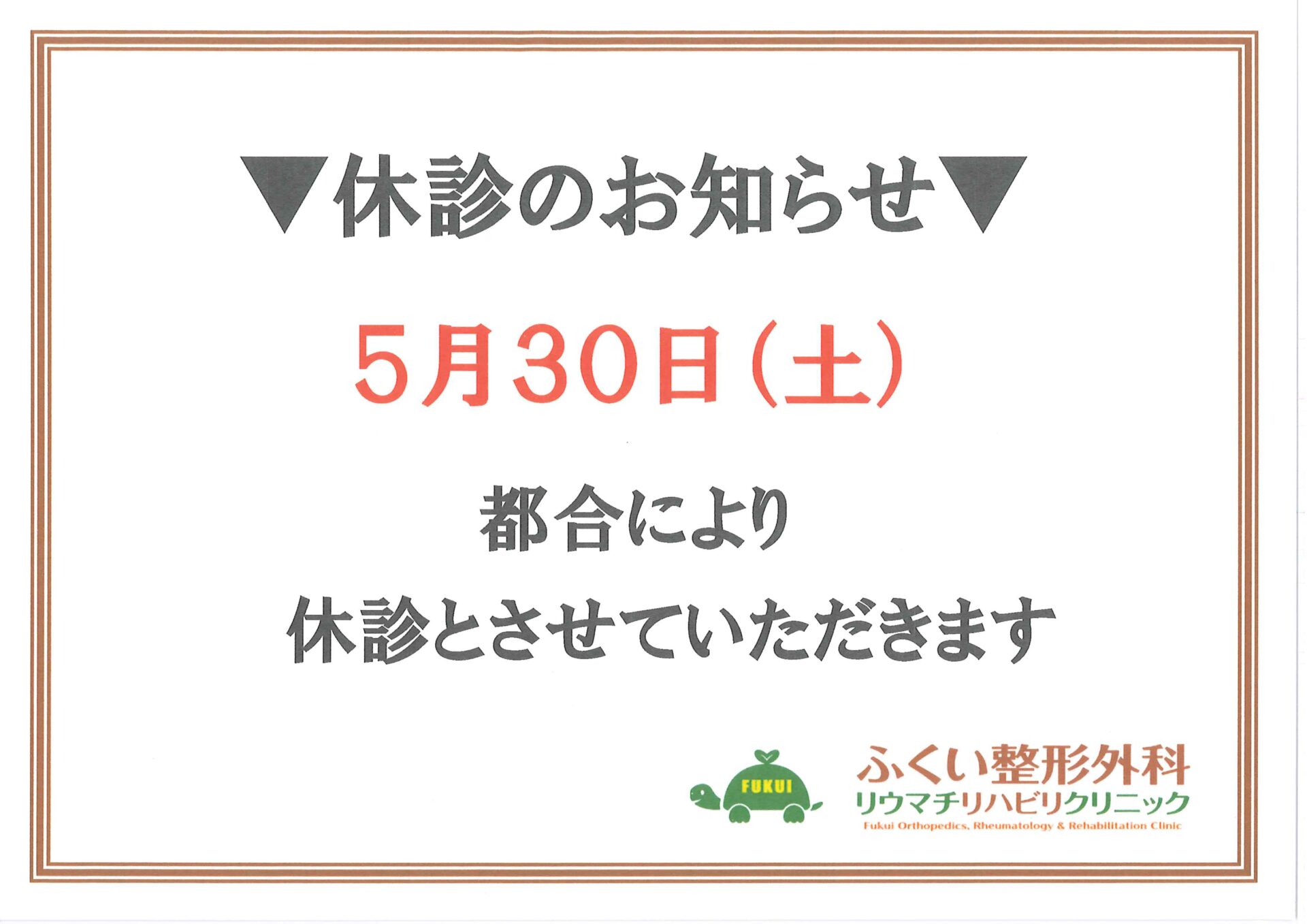 臨時休診(令和8年5月30日)のお知らせ